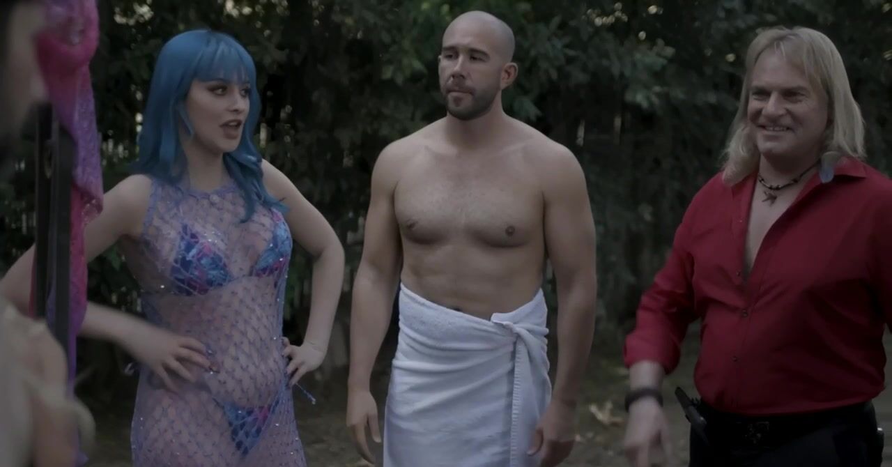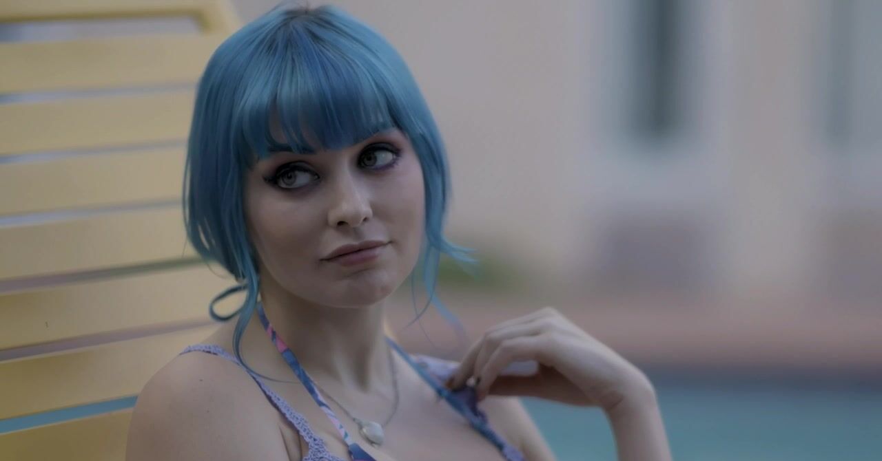 «Синеволосая красотка предлагает лысому парню вернуться в комнату и там заняться жарким сексом. Это случается во время совместной поездки с друзьями. Пара почему-то уже давно не трахалась, было много забот и дел, но пора это исправить. Лысый парень набрасывается на киску развратницы и жарко её лижет. Она может кончить за минуту, так давно у них не было интима. Но приходится сдержаться, оргазм ведь должен наступить от члена, так приятнее.»