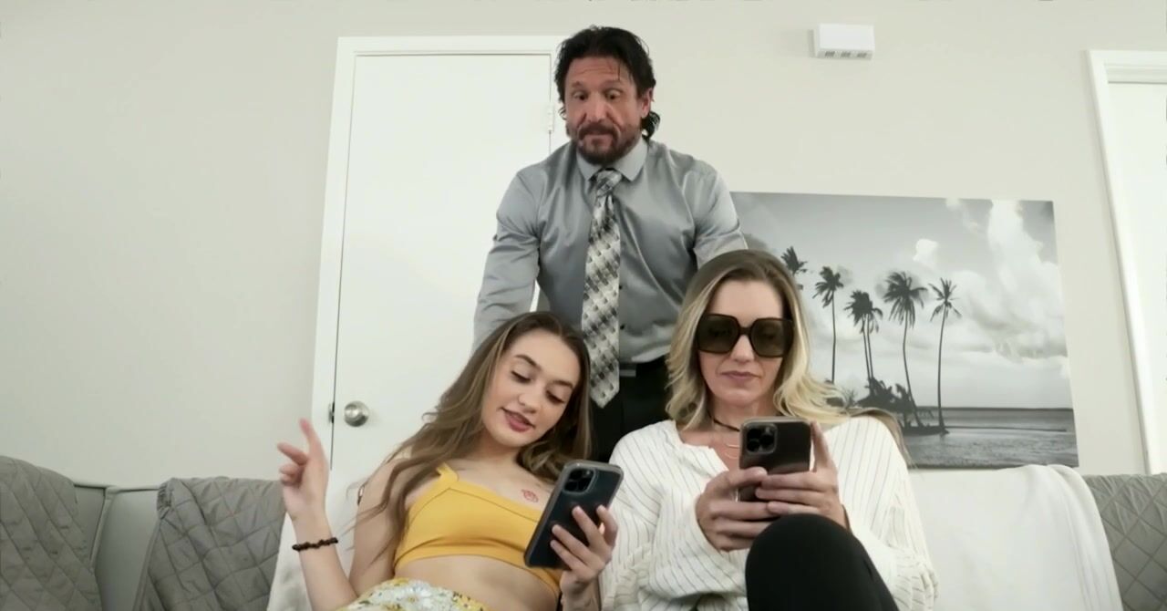 «Жена после операции на глазах ничего не видит несколько дней, так что мужик может трахать падчерицу и не бояться, что женушка застанет их за сексом. Только вот они забывают, что милфа всё ещё всё хорошо слышит. Но молодой девке и отчиму пофиг на это, они развлекаются по полной программе и наслаждаются жаркой еблей. Стройная развратница делает папочке отменный минет и прыгает на его твердом члене, бурно кончая.»