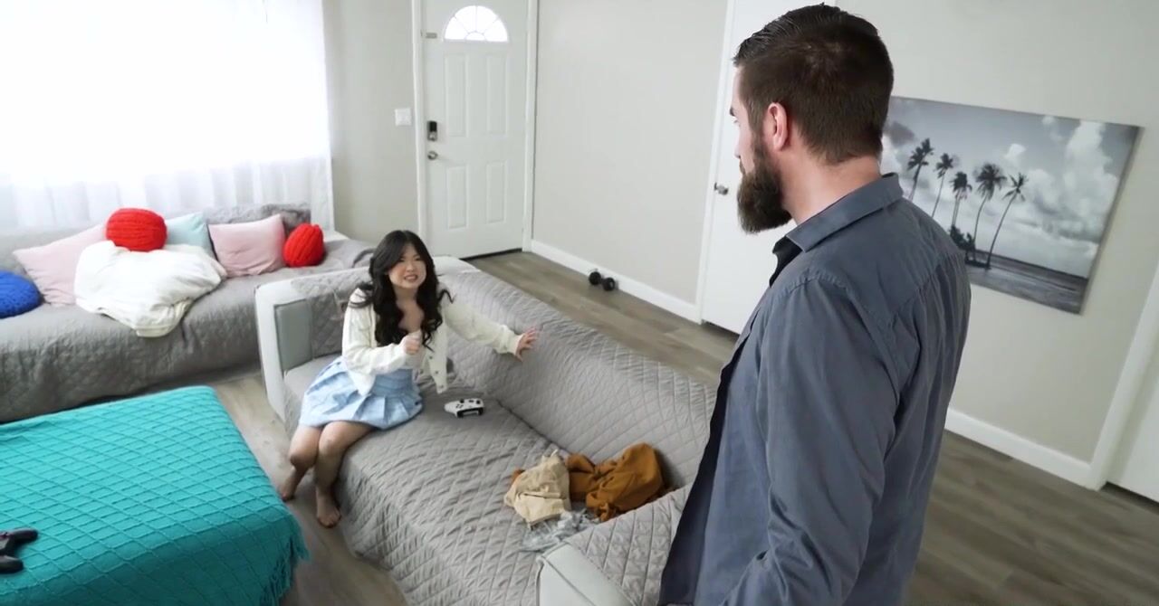 «Ну отчим ведь просил, чтобы падчерица убралась дома, пока он будет на работе. Миниатюрная азиатка пообещала это сделать, но дома такой же беспорядок, как и был. Мужик обязан наказать непослушную девчонку, поэтому задирает её юбку и принимается шлепать по упругой заднице. Но теперь это действие возбуждает их обоих, стройная азиатка аж вертит задницей и прогибает спину. Пусть папочка её накажет ещё и сексом.»