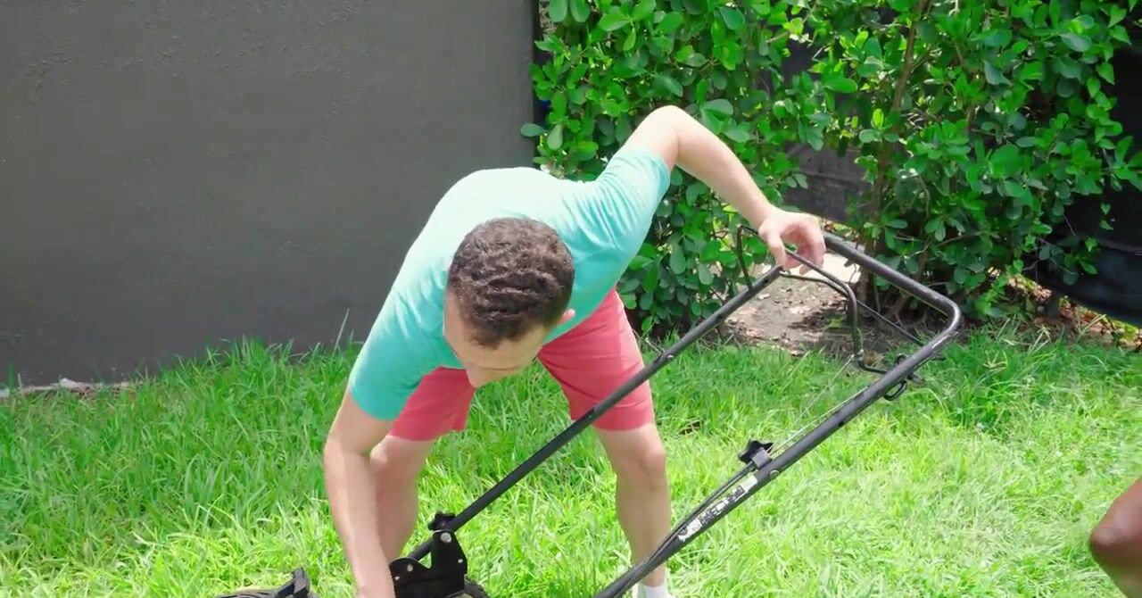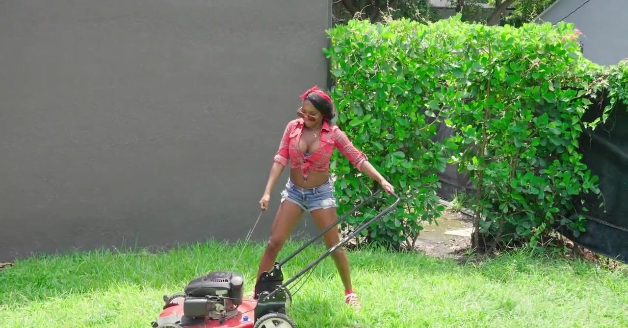 «Парень помогает чернокожей соседке покосить газон и выполоть сорняки, а потом получает благодарность от неё в виде межрасового секса. Негритянка является очень привлекательной телкой, которая уже давно возбуждала белого паренька. Так что он соглашается на интим с ней с огромным удовольствием. Жаркая бестия с силиконовыми сиськами делает качественный минет молодчику и отдается в бритую пизду на кровати.»