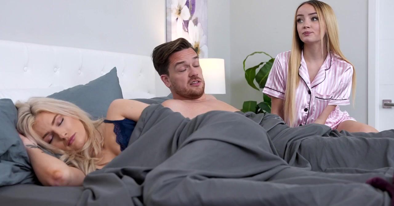 «Мужик боится, что жена узнает о его сексуальных отношениях с падчерицей, но остановится и не трахаться с ней он не может, больно уж хороша белокурая девчонка. Она делает ему смачный минет под кухонным столом пока на кухне находится мать. Блондинка сосет толстый хер и сама кайфует от оральных ласк по полной. Вскоре стройная крошка с маленькими сиськами отдается папочке и на кровати. Мужик поимел падчерицу за спиной спящей жены.»