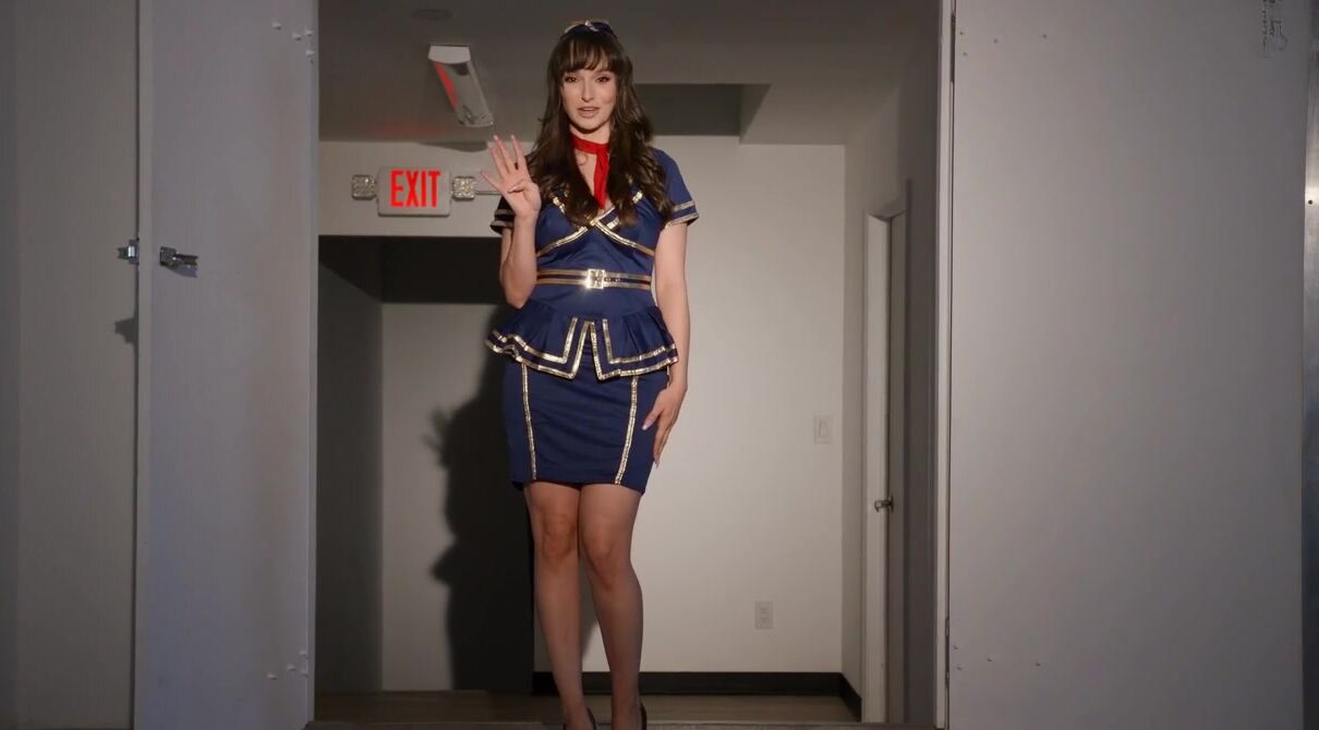 «Зрелая красотка Lexi Luna примеряет разные образы, чтобы радовать бойфренда ролевыми играми. Вчера она была домработницей, сегодня опытная брюнетка с силиконовыми сиськами становится стюардессой. А завтра она будет уже ненасытной секретаршей, которая удовлетворит начальника шикарным минетом и сексом. Лысый чел с огромным кайфом вылизывает бритую киску милфы и жарко её трахает. А кончить ей можно на дойки и лицо.»