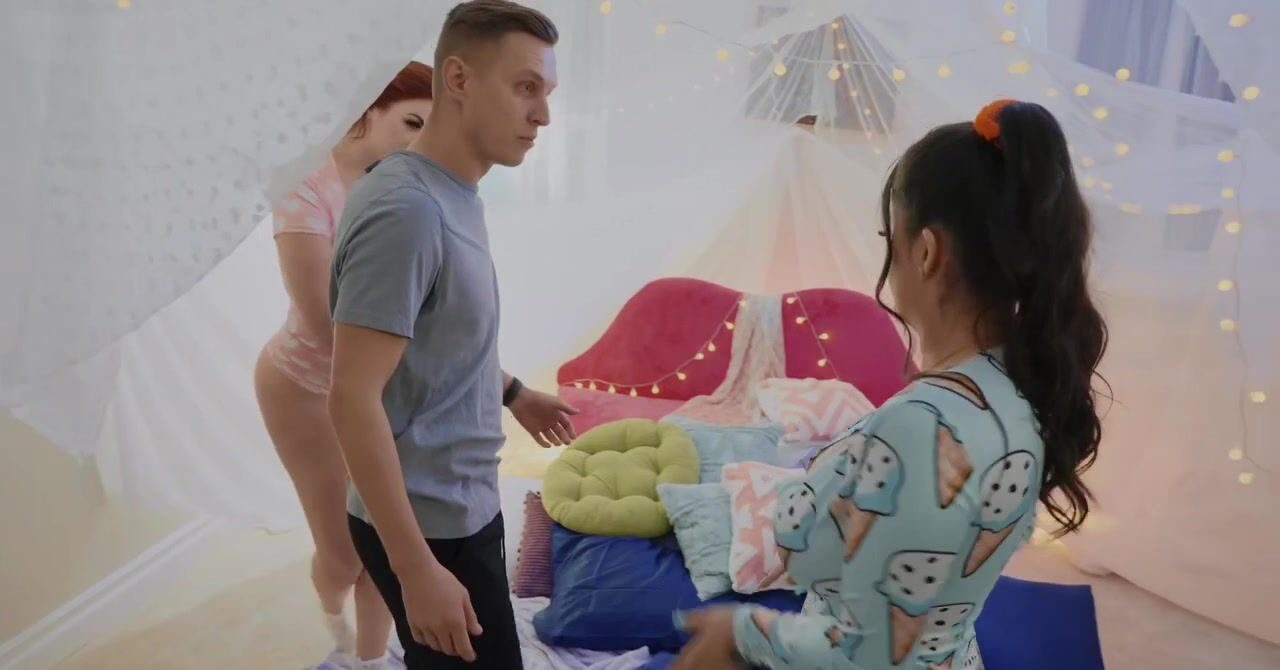 Парень на ночевке поимел двух сочных подруг в пижамах