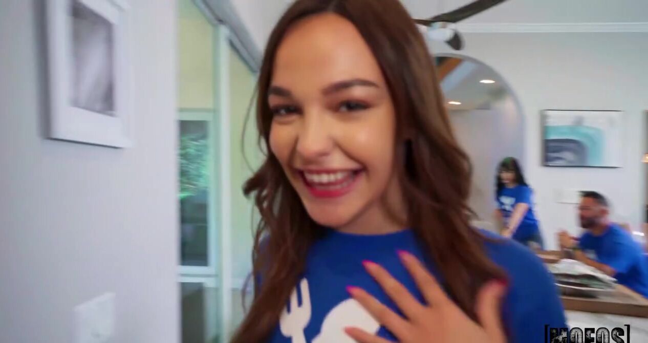 «Милая девушка стала волонтером и теперь занимается приготовлением еды для бедных. Но там она встречается с симпатичным парнем, который заставляет её киску мокнуть. Короче говоря, одной готовкой дело не обходится, привлекательная проказница решается ещё и на секс с этим парнем. Игривая крошка, пока никто не видит, опускается перед ним на колени и принимается делать минет, после чего поднимает юбку и отдается в киску.»