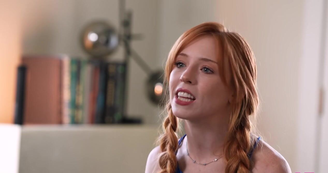 «Рыженькая сводная сестра с косичками уже давно делала разные намеки на секс, но сегодня милашка решила не ограничиваться заигрываниями. Худышка разделась и показала своё тело во всей красе, предлагая брату пошалить. Ну как тут от такого можно было отказаться? Чувак согласился и взялся сперва вылизывать киску рыженькой худышки, а потом уже кайфонул от её умелого ротика и вагинального секса на кровати.»