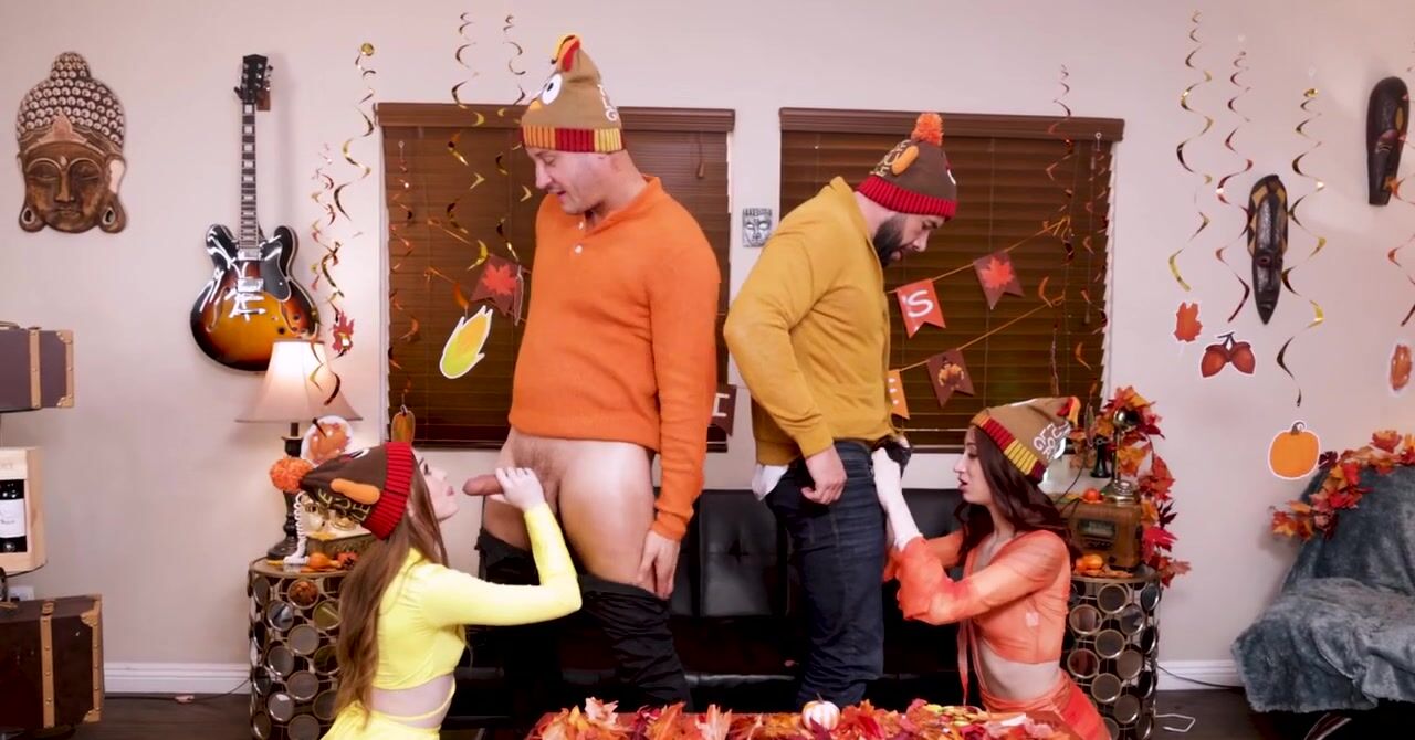 «Худенькие подружки решают обменяться отчимами для группового секса. Девушек возбуждали папочки друг друга, ну а мужиков предсказуемо заводили стройные проказницы. Уже вскоре начался нереальный разврат, во время которого две цыпочки принялись активно работать своими умелыми ротиками и отсосали фаллосы мужчин, а затем отдались в бритые киски. Они прекрасно провели время и подставили лица под их сперму.»