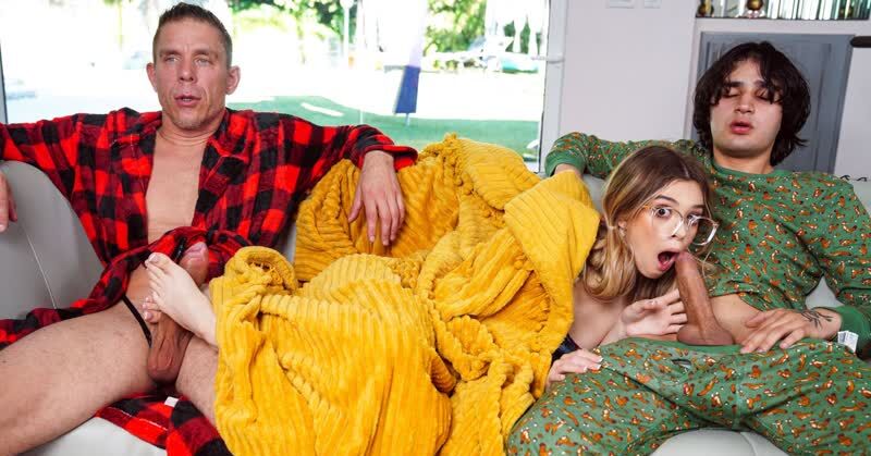 «Стройная девушка только что отсосала член бойфренду, который кончил ей в рот. Худышка тут же побежала в ванную комнату, где к ней сзади пристроился отец парня. Теперь милашка в очках поняла, что такое заниматься страстным сексом. Этот опытный мужчина отжарил её так страстно, как крошку ещё никто и никогда не ебал. Даже делать ему минет было удовольствием, у проказницы получилось заглотить его болт полностью.»