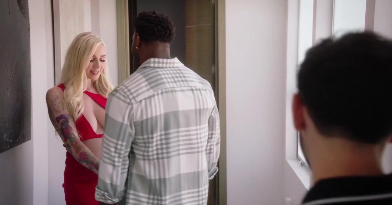 «Безвольный парень очень рад, что встречается с красивой блондинкой, которая имеет большие натуральные сиськи. Подкаблучник даже позволяет этой девушке ему изменить, только бы телка продолжала с ним встречаться. Так что цыпочка уединяется в спальне с чернокожим любовником и наслаждается межрасовой еблей. Он её как следует поимел в мокрую киску, а так же сделал куни и насладился минетом от развратницы.»