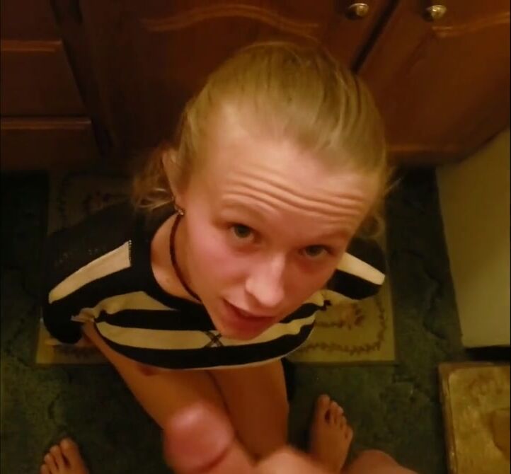 «Милой худышке только недавно исполнилось 18 лет, а она уже творит такой разврат. Стройная крошка наснимала вместе с парнем сколько видео, что их хватило на довольно жаркую подборку. В этой подборке проказница очень смачно сосет его толстый хуй и доставляет удовольствие. Девчонке нравится сосать, это видно по её выражению лица, а ещё ей по кайфу когда парень проявляет грубости. Кстати, он может вполне спокойно заливать её лицо спермой.»