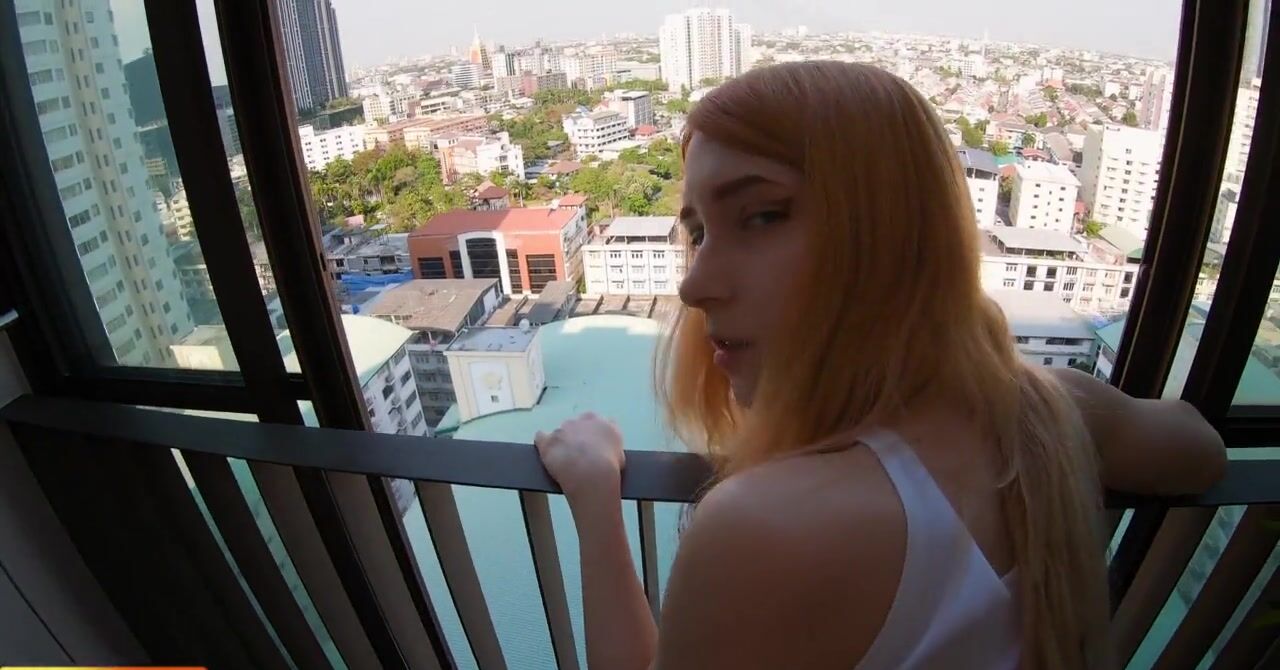 Спорт на балконе плавно перетекает в жаркий секс с парнем