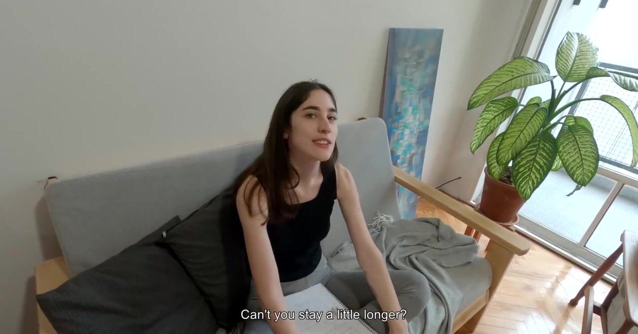 «Милая студентка просит приятеля проверить её работу, а потом достать член и трахнуть её. Что ж, с работой девицы всё хорошо, она отлично написала сочинение, так что теперь можно угостить её крепким фаллосом, который проказница принимается смачно сосать. Эта девчонка делает неплохой минет и отдается в киску. Стройная студентка с маленькими сиськами насладилась половым актом и получила сперму на живот.»