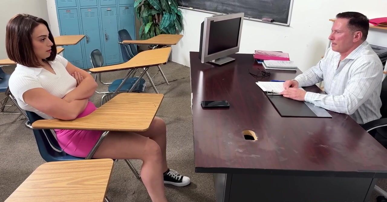 «Учитель грозится, что нерадивая студентка вылетит из учебного заведения, но избежать этого можно, нужно всего лишь заняться с ним сексом. А если это сделает ещё и привлекательная мамка студентки, то эта девка даже на стипендию может выйти. Наглый преподаватель надевает на девчонку розовые наручники и принимается над ней доминировать. В итоге мамка так возбуждается, что даже в жопу отдается, бурно кончая.»