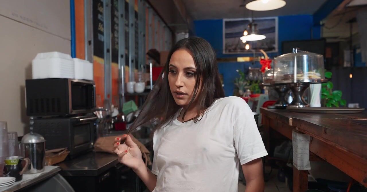 Владелица кафе ставит раком красотку и лижет её дырочки