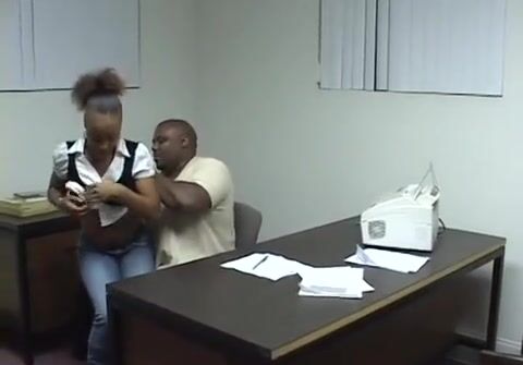 «Большой негр на собеседовании разводит на интим привлекательную негритянку, у которой совершенно нет рабочего опыта, ведь она только с института. Мужик обещает устроить цыпочку, но только после секса, поэтому та соглашается. Хуй у мужлана оказывается довольно большим. Сперва молоденькая проказница делает ему минет, а потом отдается в пизду раком на столе, приспуская трусы. Чел ещё и сперму слил на её лицо.»
